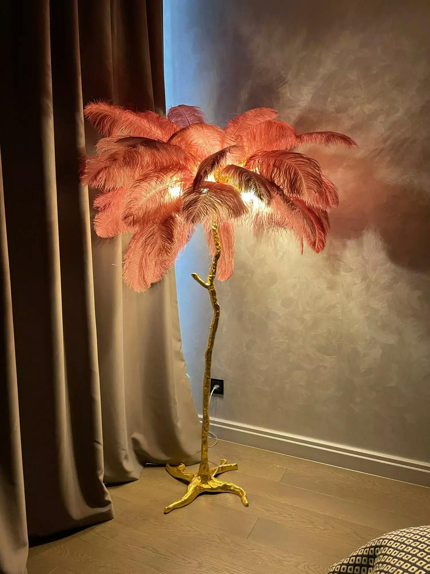 Su altura de 80 cm la hace ideal para colocarla en el suelo junto a zonas de estar, rincones de lectura o como un detalle llamativo en esquinas. Las plumas suavizan la luz de forma natural, creando una iluminación ambiental cálida en lugar de un brillo intenso. Es el tipo de pieza que los invitados aprecian y elogian porque da la impresión de estar cuidadosamente elegida, no de ser genérica.
